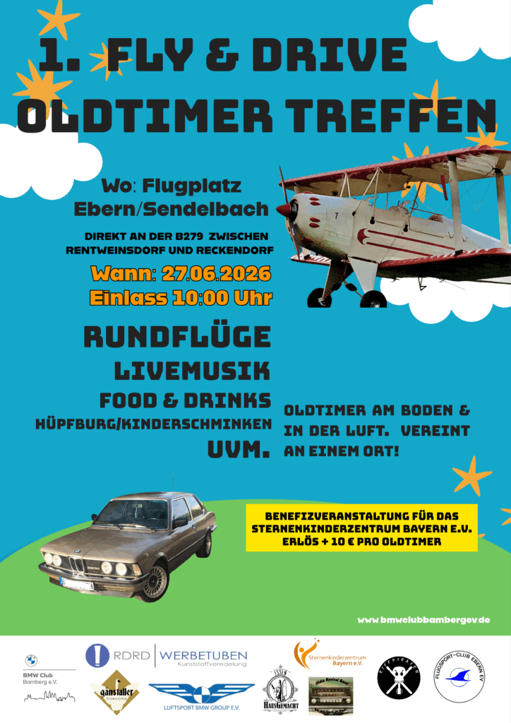 Der BMW Club Bamberg und der Flugsportclub Ebern laden herzlich zu einer ganz besonderen Benefizveranstaltung ein. Gemeinsam setzen wir uns für den guten Zweck ein und unterstützen den Sternenkind e.V.